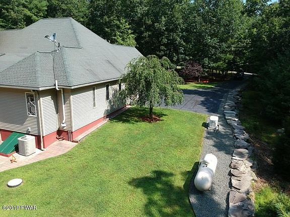 A beautiful, bright country estate, on a nice private 2 acre lot, for a perfect all-year-long Poconos getaway. It is located only a few minutes from downtown Hawley and Lake Wallenpaupack. This contemporary home offers you an open floor plan, cathedral ceilings, a huge living room with a floor to ceiling stone fire place, a totally private deck where you can entertain and listen to the sounds of nature being surrounded by a beautiful landscaping.. A kitchen, breakfast room, formal dining room, four bedrooms , 2.5 bathrooms, 2 car garage , full partially finished basement and a circular driveway, completes this great package.