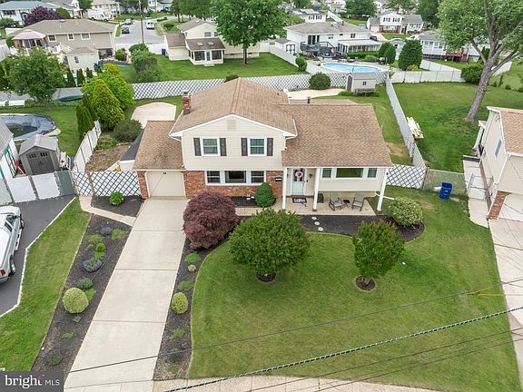 Absolutely pristine! Fall in love with this beautiful 4 bedroom expanded Split Level, offering multiple levels of living space and a stunning in-ground pool—perfect for Summer enjoyment. Meticulously maintained, this home is move-in ready and waiting for its next owner! As you approach the home, take note of the professionally landscaped yard and the welcoming maple tree that enhance the curb appeal of 24 Holyoke Drive. Step inside the foyer and are be greeted by a spacious family room featuring luxury waterproof vinyl flooring -- perfect for those pool days, a striking brick accent wall, an electric fireplace that provides cozy ambiance with or without heat, and wood ceiling beams that add warmth and character. Sliding glass doors open to a covered patio for effortless indoor-outdoor living that leads to your heated, concrete in-ground pool, a private oasis for unforgettable summer gatherings. Also on this level is a versatile bonus room with a large 8x6 storage closet, ideal for a home office, playroom, guest bedroom, or whatever suits your needs. Last but not least, an updated half bath completes this level. Upstairs, the formal living room boasts a large picture window and gleaming hardwood floors, which continue into the expanded dining room with sliders to a maintenance-free Trex deck that is ideal for entertaining or relaxing outdoors. The updated kitchen features modern neutral tile flooring, wood cabinetry, sparkling countertops, stainless steel appliances, and a cozy breakfast area with exposed beams and direct access to the deck. The upper level offers three generously sized bedrooms and a fully renovated hall bathroom featuring granite counters, modern flooring, and a tub/shower combo with sleek glass doors. The stairway also features a unique storage closet that is extra deep and perfect for games, toys, etc. Need more space? The finished basement provides additional living or recreational space with Sauna (included in sale!), along with a dedicated laundry area and separate workshop that is perfect for hobbies or storage. Out back, enjoy your very own heated concrete in-ground pool, surrounded by lush landscaping, creating a resort-style feel right at home. Additional features include a deep storage shed attached to the house and a separate free-standing shed for even more storage. Please note newer windows installed in 2020 and transferrable 15 year warranty to buyer. This home is located in a prime location that is just minutes from Rt 130, I-295, schools, shopping, and only 20 minutes from Philadelphia. Don’t miss the opportunity to make this exceptional home your own—just in time for Summer!