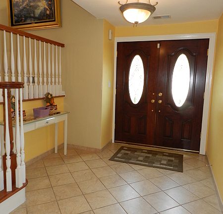 Totally renovated w/In-Law Suite. LR w/stunning inlaid HW floor, FP w/mantel, soaring cath. ceiling, large bow window & steps down to Formal DR w/HW floor. EIK w/Corian ctrs, maple cabs w/pull-outs,CT floor, breakfast bar, high-end stainless appliances, sliders to Patio. Kitchen opens to Family Room w/wall-to-wall carpeting, sliders to Patio, French Door to breezeway/garage. Den/BR is perfect for In-Law Suite w/sep. entrance, sound-proofing & Full Bath w/stall shower. MBR Suite w/wall-to-wall, 2 double closets, Full Bath. 3 Additional upstairs BRs and a Full Hall Bath. Large, level corner lot w/paver pathways & Patio, no maintenance vinyl fence. Upgrades galore, incl. New roof, chimney, gutters, Belgium block drive, drainage, fuse box, landscaping, upgrades to baths, new HW in LR & DR. Absolutely pristine!