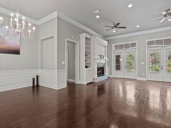 Amazing Executive Home in The Village. This excellent floor plan provides private baths for every bedroom and a half bath for guests. The family room is open to the kitchen, dining room, and the breakfast area thereby creating a large enjoyable space for family or entertaining. Kitchen includes granite countertops, large work island, brick archway, pendant lighting, Thermador gas 6-burner range, wine cooler, and a SS refrigerator/freezer. The entire home is well coordinated for décor with 10–12-foot ceilings, plantation shutters, double arched windows, extensive crown molding. There are numerous patios for enjoyment of the outdoors. The garage area has a 3rd bay for tools, lawn mower, etc. This subdivision is adjoining the Hattiesburg Country Club and is very convenient to the Longleaf Trace. The Village is a gated community. This home was thoughtfully custom built and very appealing.
