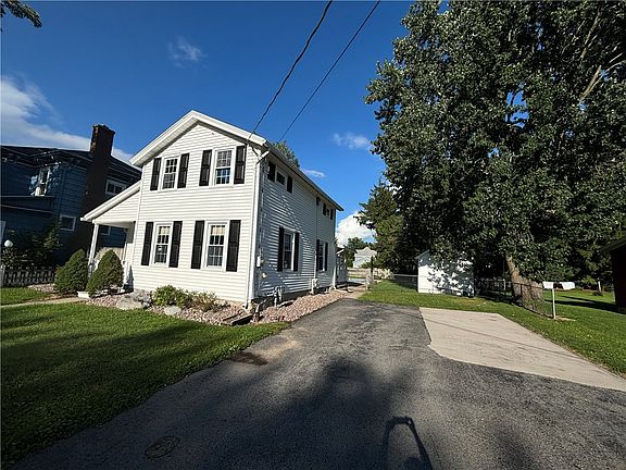 The picturesque home is nestled in the sought-after Owasco elementary school district, boasting a delightful charm that is sure to captivate any potential buyer. The updated kitchen features stainless steel appliances, a stylish backsplash, and a convenient movable center island, perfect for preparing meals and entertaining guests. The spacious first floor bathroom includes laundry facilities for added convenience. This elegant home also boasts a formal dining room, a cozy living room, and a first-floor bedroom with beautiful hardwood floors throughout. A newly built stairwell leads to two generously sized bedrooms on the second floor, along with a brand new half bath complete with a sleek pocket door. The exterior of the home showcases vinyl siding and replacement windows, as well as a newer roof and a rebuilt shed. A large driveway made of blacktop and concrete provides ample parking space, while the highlight of the property is undoubtedly the fabulous in-ground pool and stunning fully fenced yard. This outdoor oasis is perfect for enjoying the warm summer days and evenings with family and friends. Don't miss the opportunity to make this lovely home your own.