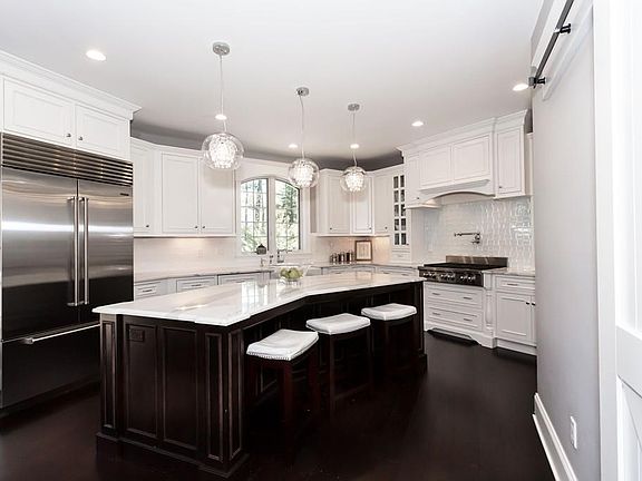 This absolutely magnificent home was built in 2016 with approx 5800sqft, 5 beds and 4.5 baths. Whole house top of the line upgrades with no expense spared. The enormous kitchen has 6 burner Wolf stove, Wolf oven, Wolf microwave, Cambria countertops, Farmers sink, Sub Zero fridge/freezer and temperature controlled Wine fridge. Bamboo wide plank Espresso floors throughout the entire house. A beautiful open dining room, sitting room and private office all with detailed wainscoting complete the 1st floor open plan. Luxurious master bedroom with gas fireplace and his and her walk-in closets equip with tons of built-ins. Master bathroom boasts a steam/rainfall/side spray shower with River stone tiles, heated floors & towel racks. Albert and Victoria soaking tub, his and her marble vanities. 3 additional bedrooms, one en-suite and one jack and Jill bath. The finished basement incorporates a movie theater room, open living area, full gorgeous custom bathroom, bedroom and exterior access.