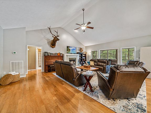 This beautiful 2500sf home has 3/2.5 and is located on 4 acres on a cul-de-sac in Cumberland Cove. Inside, the living room has a vaulted ceiling, hardwood floors & a gas log fireplace. The kitchen has good workspace, Corian tops, stainless 5 burner gas range & dishwasher, trash compactor & under cabinet lighting. The master suite has a trey ceiling, double sink vanity, walk-in shower & closet, and a jetted tub. Lots of great space in this house with the bonus room (built-in desk area), formal dining room, and large laundry room with utility sink. Outside, there are great areas for entertaining. There is a new deck and hardscape area with a firepit and a screened in area(hot tub negotiable). This home features a whole house generator & extra storage in the barn. Call today for more info!!