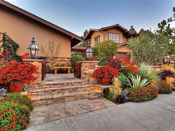 Come see this custom masterpiece again for the first time!!! It has been completely redecorated in a sophisticated, elegant yet modern style. The design showcases the exquisite detail of the construction including 13 foot ceilings and dramatic stone and wood work throughout. This premier Big Canyon Estate was completely rebuilt just SIX years ago with every inch designed and built with the finest materials in the world. Hand cut stacked stone, slate roof, copper gutters and gas lanterns accentuate the inviting outdoor living spaces. The interior courtyard has a majestic olive tree which shades the living area around a wood burning fire place, covered bar with ice maker, refrigerator, and custom cabinets concealing a large TV. The backyard has a pebble tech pool and spa with multiple water features, a 42-inch Lynx grill, and custom cut stone farmhouse sink. No expense was spared on the inside either with 13 foot ceilings, over 40 windows bringing in a glorious balance of natural light, heated marble floors, and a custom wood master closet with hand stitched leather pulls by Studio Becker. There is a separate retreat/office/guest house with exquisite wood paneledand inlayed ceiling above the three-car garage. This truly is one of the most meticulously designed and maintained homes ever to hit the market in Big Canyon.