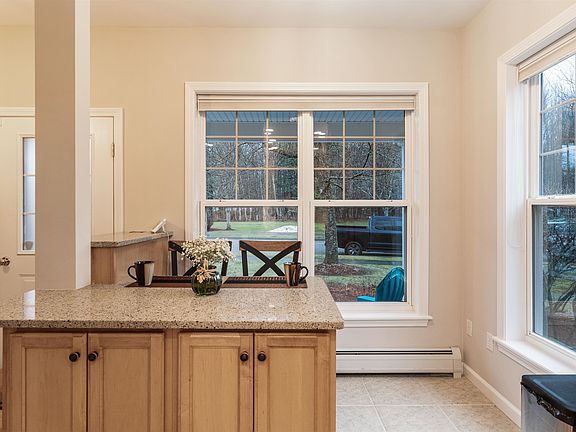 Amazing opportunity to own a meticulously maintained and updated End Unit townhome in the highly sought after Autumn Knoll neighborhood! Sitting on a private street surrounded by mature trees and conservation land, this property offers an abundance of privacy and natural light. Walk in to an open foyer with tile flooring. The spacious breakfast nook has large custom windows providing plenty of natural light for your morning coffee. In the kitchen, enjoy new custom lighting throughout including over and under cabinet lighting. The very spacious living and dining rooms located off the kitchen offer beautiful bamboo floors, a gas fireplace, and wooded views. Step outside onto your private deck to enjoy the peaceful stillness of the surrounding trees. Upstairs, you have 2 large bedrooms including a large primary bedroom suite with a walk-in closet and built in shelving, plenty of storage, and comes complete with a private full bathroom. An additional office/bonus room is perfect for working from home. The full sized utility/laundry room is conveniently located upstairs as well. Large single car garage and storage. Newly installed boiler less than 2 years ago, with hot water on demand, as well as an energy efficient thermostat (that you can control from your phone!) New security system installed can be controlled from phone as well! Close to the outlets, shopping, dining, and nature.