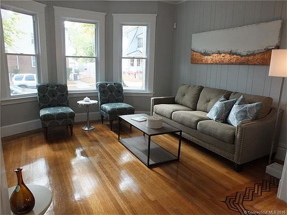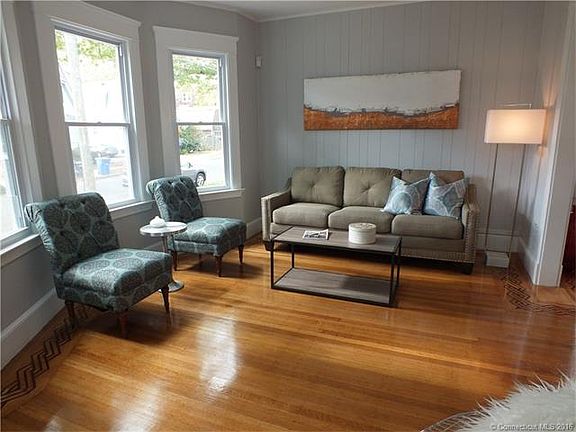 GORGEOUSLY Remodeled Colonial loaded with exquisite period details! Incredible refinished hardwood floors with mahogany in-laid design, high ceilings, turned staircase, original glass doorknobs....just amazing! Large 3 BR, 1 1/2 BA home with over 1600 square feet on two floors plus a big unfinished walk-up third floor attic. Beautifully updated with open- floor concept, large new kitchen with huge granite topped island, exposed brick chimney, and lots of cabinet space. On the first floor is the kitchen, half bath, the formal Living Room and the large Formal Dining Room all flooded with sunlight from the tons of windows. An enclosed back porch leads out to nice sized yard and a very desirable two car garage. Keep your car warm and dry this winter! The second floor of the home features the three bedrooms and a newly remodeled full bath. The Master Bedroom has a large walk-in closet/ dressing room that's sure to please! This home features custom lighting through-out, and is all hardwood and tile....no carpet!! Quiet one-way side street is moments from everything, including I-95 and downtown New Haven, shopping, Tweed New Haven airport, and public transportation. New roof in November 2019