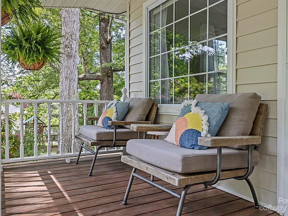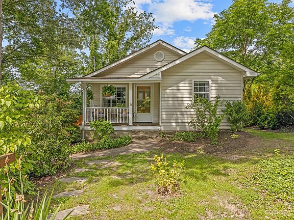 MULTIPLE OFFERS received. Please submit highest and best by Sunday, 5/21/23 at 6 pm. This delightful property blends modern amenities and classic architecture with a local mountain rock wood fireplace, some original wood floors and a beam from the old Asheville Railroad Station. Relax on the inviting front porch amid lush landscaping. The open concept floor plan flows between the living spaces allowing for easy living and entertaining. Skylights flood the kitchen and family room’s soaring 14 '8 " ceilings. The primary suite is a true retreat with a luxurious soaking tub. Use the flex space for your specific needs, easily converting one area back to a third bedroom. The fully fenced backyard is a private oasis with decks and a fire pit. On a quiet street tucked away between UNCA and Merrimon Ave. Stroll the neighborhood or walk to Zen Sushi, Green Sage, Vinnie's or the Hop.