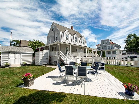 Open House Cancelled Offer Accepted Walk to Bay and Beach from this beautiful home. Large corner lot with a fenced in yard. Enjoy the cool bay and ocean breeze on the covered wrap around deck. Outdoor shower, shed and patio complete the professionally landscaped yard. There are two driveways for plenty of off-street parking. First floor features unique circular fireplace with a 30,000 BTU gas insert and large top to bottom windows for view of deck and yard. Second floor has 3 bedrooms, laundry room, and full bath with tiled shower and vinyl trim. Ceilings are original floor joists with varnished hardwood. The 3rd floor is newly remodeled with wall-to-wall carpeting, recessed lighting, laminate walls and ceiling. Can be used as a large bedroom, game room or family room.