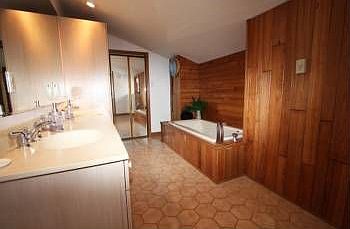 A bright & open floor plan welcomes you to this Contemporary style home that is set on almost 2 acres. Many features of this home include a sun filled living room anchored by a floor to ceiling stone fireplace, wet bar, and glass sliders to the deck. The spacious eat in kitchen boasts lots of cabinets, Corian countertops, ceramic tiled floor & recessed lighting. A formal dining room, bedrooms, and laundry room round out the lower level. Relaxing is easy in the upper level master suite with a private deck overlooking the yard. The master bath features a jacuzzi type tub, dual sinks, linen closet, separate stall shower and accesses the walk in closet. Your living space is increased by the full basement. You'll love entertaining on the expansive deck with hot tub overlooking your amazing property.