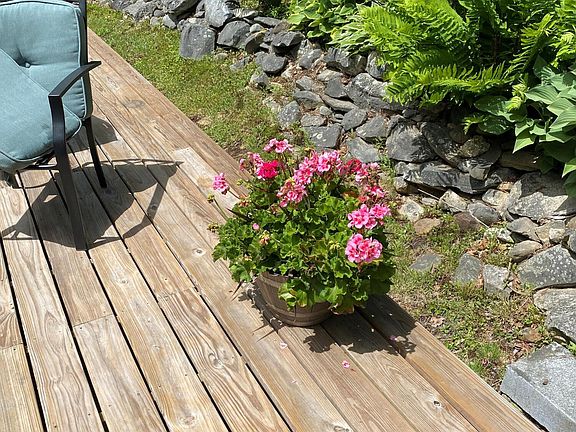 Tastefully appointed 3-bedroom, 2-bath ranch on 5 acres with back deck the length of the house with views of granite ledges and perennials. Great kitchen with lots of storage and counter space with eat-in area at bar, new appliances, little office off kitchen, dining area opening onto deck, spacious living room. Three lovely bedrooms, the main bedroom with its own bath. Finished, heated exercise room in lower level and another area for expansion if necessary with double exterior doors at ground level. Turn-key with lovely furnishings and linens included, ready to move in. Great rental history.