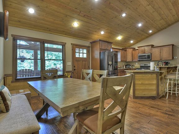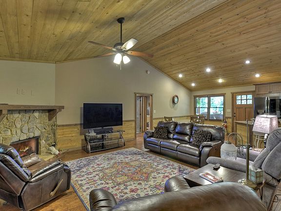 Tucked Away but Very Convenient! A beautifully designed 4/3 rustic minutes from downtown Blue Ridge. Easily accessible, located in all paved Twin Lakes Community this impressive property is ideally located to dining and shopping. The home offers the perfect blend of drywall & wood, upgrade throughout, custom cabinets, & an oversized party porch w/ fireplace perfect for outdoor entertaining. In addition to these stylish features, the home is complete w/ breezeway to 2 car garage. This checks off all the boxes for full time or part time living.