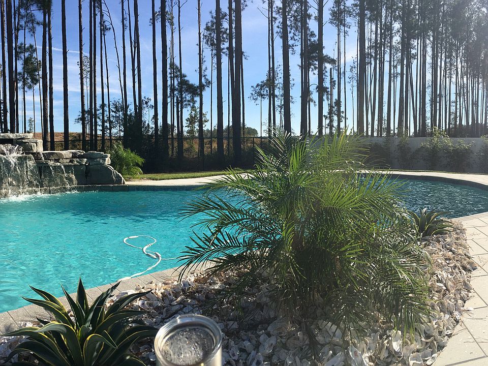 Resort style 27,000, 8ft deep custom pool with water falls, tanning ledge, hot tub, finished tabby stone pool/patio deck