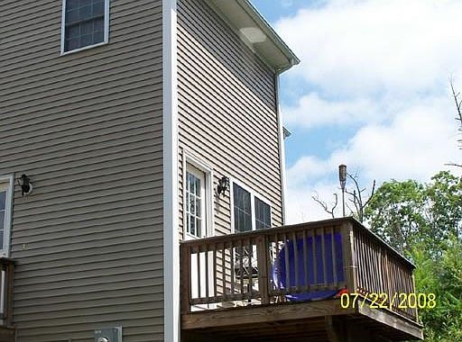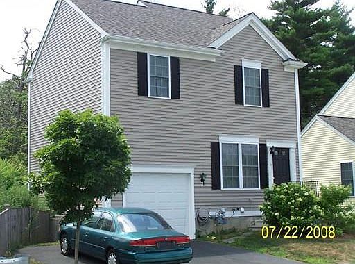 11 years young, charming 3Br 2.5Ba colonial in a neighborhood of like homes. First floor features an eat in kitchen and living room with deck access. Second floor has a large master bedroom with a private full bathroom. 2 additional bedrooms and full bath are on also this level. Basement is finished, currently being used as a play room, but would be a great man cave or family room. Garage underneath for your car, bicycles and more. Home abuts conservation land on 2 sides, it's very quiet, although located close to highways! Central a/c and fenced in yard.