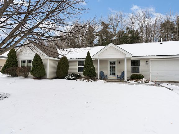Welcome to highly sought after Cider Hill 55+ Community! One level living in a wonderful development with Clubhouse. Home renovated in 2023, and includes new TRANE furnace. Shows beautifully! Located on one of the BEST lots in Cider Hill. A wall of windows gives a serene view of the woods. Private deck overlooking woods with lots of pine trees for year-round greenery. Only attached wall is the garage wall - no neighbor noise - feels more like a home than a condo! Light & Bright - natural sunny lighting. Open floorplan with vaulted ceilings in living room and kitchen makes it very spacious. Lives large. Kitchen has new large butcher block island - ideal for cooking or gathering - a new wine/beverage cooler and pull out drawers in pantry. Updated stainless appliances. Home features 2 bedrooms and 2 bathrooms, living/dining room with gas fireplace, central air conditioning and spacious one car garage. Enjoy meeting your neighbors or participating in weekly social activities. Weekly newsletter keeps you abreast of upcoming events. Clubhouse is equipped with separate exercise room. Great neighborhood for walking. Neighborhood also has beautiful nature trails and pond. Close to beach and restaurants. Never lift a shovel or mow the lawn again! MOVE IN READY!
