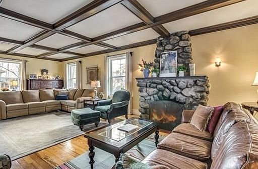 Unsurpassed craftsmanship, period details & spaciousness in an updated 3,726 sq ft colonial located in one of Stoneham's top neighborhoods. Home features hardwood floors thru out, 21 foot foyer with stunning staircase, 9 foot ceilings, & pocket doors. The 30 foot living room includes coffered ceilings & a massive fieldstone fireplace. Chef's eat in remodeled kitchen has ample floor-to-ceiling custom wood cabinets with interior lighting, a commercial grade 5 burner natural gas SS stove & vent, granite countertops, breakfast peninsula, and recessed/pendant lighting. A Pella sliding glass door to 31x15 deck overlooking gunite pool. The gracious dining room has a 8x5 ft built-in cabinet & French doors. A home office, 2nd stairway & updated half bath complete the 1st floor. Master bedroom features a 19 foot walk in closet, built in window seat, 4 piece bath & Kohler jetted tub. 2nd floor laundry room. Potential for additional 2 more bedrms in unfinished walk up attic with Boston skyline vie