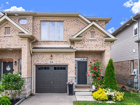 Presenting 24 KINGSBOROUGH DR. An Exceptional End Unit Freehold Townhouse with 1522 Sq Ft in a Sought after Stoney Creek Mountain. House offers an amazing Location, Steps to All Major Retail Shopping and Minute to Red Hill Expressway. House is absolutely Loaded with Upgrades including an Open Concept Main Floor Plan, 9ft Smooth Ceiling, Freshly Painted (Jun 2025) . Modern Kitchen with High end Ceramic, Extended Kitchen Cabinets, Elegant Backsplash, Granite C/T, Breakfast Centre Island, Under Mount Kitchen Sink and Stainless Steel Appliances. Open Concept Living Room with New Hardwood Floor (2025) and Pot Lights. Dining with Walk Out Patio Doors Over Looking to a Tastefully Landscaped Concrete Private Backyard for Summer enjoyment. Leading to Second Level Boasts Hallway Hardwood Floor, Master Bedroom with W/I Closet and 4Pc Modern Ensuite with Standing Shower. Bright Spacious and Sun Filled 2nd and 3rd Bedrooms. Visitor Bath with High end Ceramics. Conveniently Located 2nd Level Laundry with Double Door and Uppers. Very small Road and Snow Removal POTL Fee, Private Driveway and No Side walk. This House Exemplifies Top Quality Finishing. Book your showing with Full Confidence.