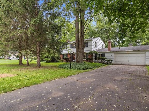 Opportunity awaits! Put your stamp on this 4 bedroom 2.5 bathroom Colonial tucked in a quiet, mature treed Pittsford neighborhood! This 50+ year one owner home boasts plenty of living space from the large fireplaced living room, the family room that opens to the eat-in kitchen, and the year round sunroom that's flooded with natural light. Red Oak Hardwood floors stretch from the formal dining and family rooms upstairs through all four good sized bedrooms. The primary bedroom offers two closets and an en suite bathroom. Crown molding, board and batten, built in storage, and three panel interior doors are some of the architectural details that set this home apart! The partially finished basement with a built in bar and office, attached two car garage, and shed offer plenty of hobby and storage space. Access the fully fenced back yard from the home's rear hallway or the garage and enjoy the nearly half acre tree lined lot. Centrally located between Pittsford, Fairport, East Rochester and Penfield. Just minutes from 490, Wegmans, Pittsford Plaza and several golf courses! Delayed Negotiation: The seller will review YOUR offer Monday 8/21 after 6:00pm!