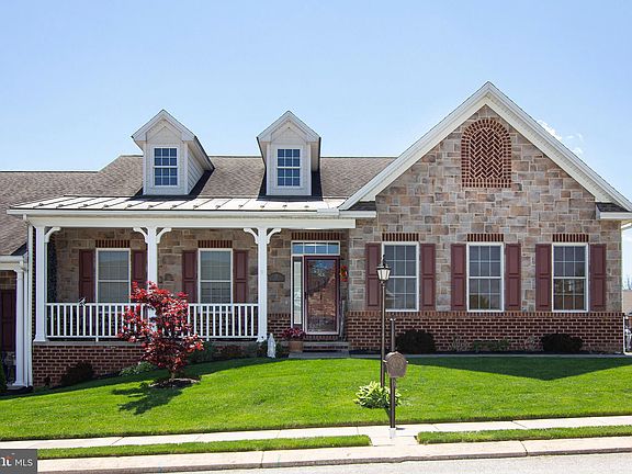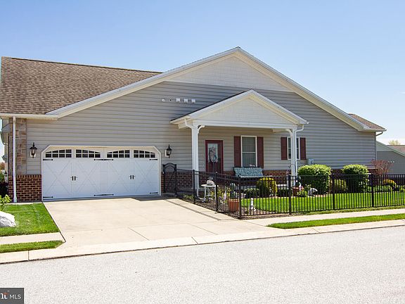 Welcome to 24 Klein Way, a stunning home nestled in the vibrant Stoners Farm subdivision, catering to the active lifestyle (NOT AN AGE RESTRICTED NEIGHBORHOOD). This single-story villa boasts a charming exterior featuring brick and stone with custom design, complemented by faux dormers, vinyl siding, shake shingles, and distinctive roofing. Step inside to discover a spacious main level offering a bright and open floor plan with a great room boasting 9-foot ceilings, an inviting eat-in kitchen with updated appliances ('23), island, a cozy breakfast room, separate dining room, private office/den with 5' French doors, convenient laundry/mudroom, two generous bedrooms with walk-in closets, and two full baths. The attached two-car garage with side entrance adds to the convenience. Relax or entertain on the rear deck overlooking the beautifully landscaped lot enclosed by black aluminum fencing with entry gates and a handy storage shed. The lower level is ideal for additional living space, featuring a family room, a kitchenette equipped with cabinetry, a second stove, and a microwave, along with three separate rooms perfect for crafts, hobbies, a den, or workout area, plus ample storage options. Utility amenities like natural gas heating,/central air (replaced '21), instant hot water, and a water softener are housed here as well. Located within walking distance of local amenities including a grocery store, pharmacy, hardware store, and nearby attractions like Littlestown Community Park, YMCA, churches, and restaurants, convenience is key. Don't miss out on this fantastic opportunity in this welcoming community and picturesque setting. Schedule your tour today!