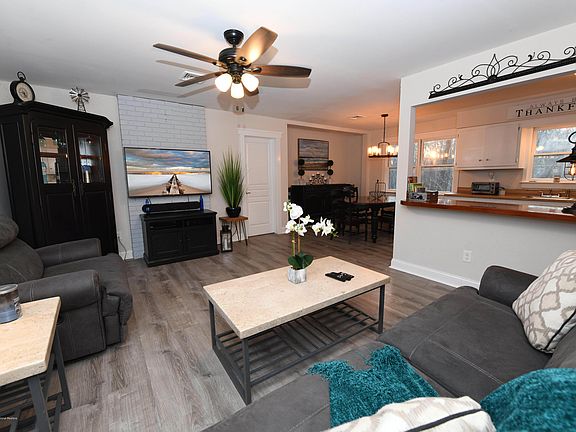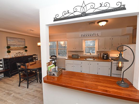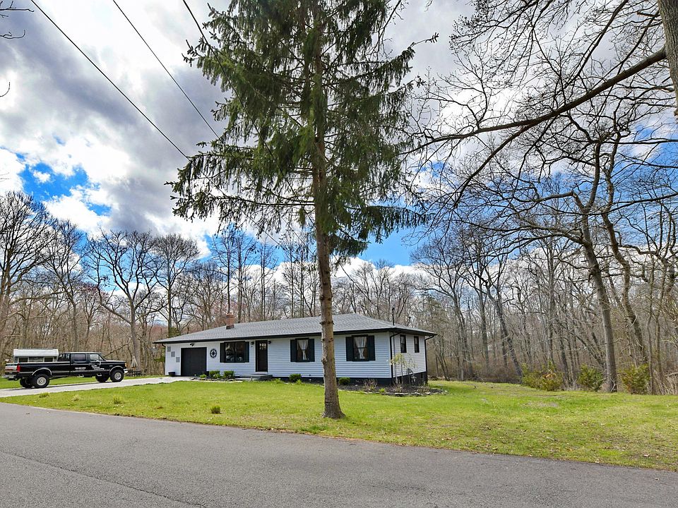 Privacy awaits you on this 1.88 acre property! Perfect 3 bedroom, 1 & 1/2 bath ranch w new wide plank flooring throughout and a 2 year young roof. Kitchen with breakfast counter opens to the dining & living room for a nice open floor plan that's great for entertaining. Large full dry basement with high ceilings has french drain, sump pump & bilco doors to the yard. Double wide driveway & Over-sized 1 1/2 car garage with attic access and workbench area. Very private yard with stream in backyard. Just starting out or getting ready to retire, this ranch might be just perfect for you! Come and take a look, you will be glad you did! Close to 33 & 195 for a quick trip to the beach!! This is a great house for an unbelievable price!*All furniture negotiable too!