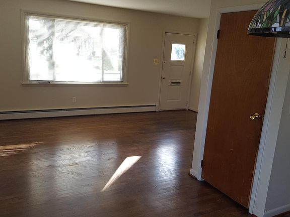 Refinished hardwood floors, full unfinished basement, and 2 car garage. Gas heat (no central air.) 1 year lease. Tenant responsible for all utilities.