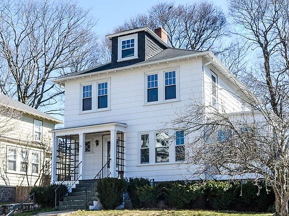 Classic Bellevue Hill Colonial, gently lived in by the same family for several decades, is now ready to welcome its new owners! You'll find a nice balance of upgraded and older items, allowing you to move right in and renovate as you wish, or to do it all in one fell swoop. Oak floors upstairs and down that will come right back with a bit of buffing; gumwood trim and mouldings throughout the common rooms, as well as a large attractive china cabinet. Sunroom off the living room that really lives up to its name and a fireplace in the living room that hasn't been used in many years. High-quality wood-faced replacement windows on first floor; traditional replacement windows upstairs. Powerful Buderus heating system; tidy 3/4 bath off the kitchen and mudroom. Outside, a two-bay garage plus plenty of driveway parking and a good-sized backyard ready for gardens, kids, dogs -- new owners just need to restore a few sections of the fence. Walk Score: 72!
