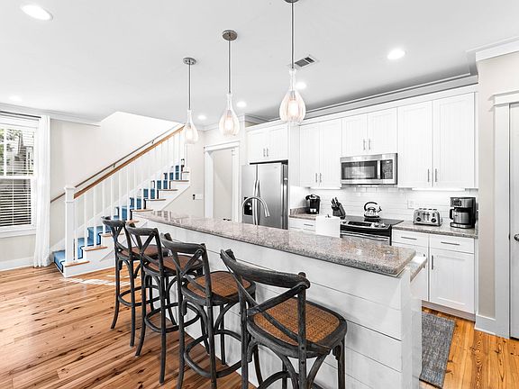 BRING AN OFFER! GORGEOUS LAKE VIEWS, FULLY FURNISHED WITH 6-SEATER GOLF CART INCLUDED WITH SALE - Nestled within the private, gated community of Forest Lakes located on 30A, this stunning home offers an exceptional blend of comfort, style, and natural beauty. With access to scenic walking trails, lush green space, a large community pool, and a covered outdoor pavilion, this residence provides the perfect balance of relaxation and recreation.At 24 Lanier Drive, step inside the entry foyer where your eyes immediately are drawn to the large back windows and French doors leading to the back porch overlooking the lake. But first, turning to the left you are greeted by the first-floor primary suite with a beautiful master bath featuring a floor-to-ceiling tiled shower and walk-in closet. Headed back into the invitingly open main living area, you'll find those large windows framing serene lake views and filling the space with natural light. The peaceful setting continues onto the back, screened-in patio where you can unwind while taking in the tranquil lake views. Back inside, you'll notice the beautifully designed kitchen which features stainless steel appliances, granite countertops, and a spacious island with a breakfast bar, making it ideal for both casual meals and entertaining.
