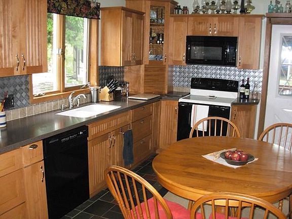 Totally remodeled 3-bedroom, 2-story farmhouse. Newer kitchen, 3-season sun-room, mint condition throughout on spectacular 5 acre property. First floor family room, deck and patio, 2 horse barn, could be storage shed, 3-car garage, large 2nd floor attic, pellet stove, 2 full modern baths, mud room, original pine floor from 1890. Satellite WIFI (DirecTV) stays. Sewer is a cesspool.