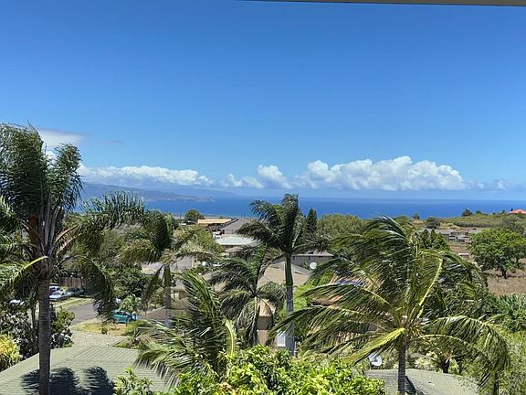 Perched upon an elevated knoll above the surrounding neighborhood, this split-level home captures fantastic views of the north shore, ocean, and West Maui Mountains from the upper and lower levels. The home is located within a peaceful neighborhood, at the middle of a Cul de sac, and is convenient to restaurants and shopping. The yard has huge potential with two mature mango trees and room for an ohana to be built. Each level of the home is lined with an expansive covered lanai space to extend the outdoor living area and is equipped with a sliding glass door from almost every room for access. The primary bedroom is upstairs off of the living room, kitchen, and dining room with an on-suite bath, split system AC, walk-in closet, and access to the covered lanai with ocean view. The additional bedrooms are located downstairs with a bonus family room equipped with bar sink and mini frig for convenience. The home is being offered partially furnished. There is a security alarm in place, outdoor shower, hook-up for hot tub is installed, and oversized septic is in place for potential cottage. Exterior was recently repainted. Easy to show. The Owner has an Active Hawaii Real Estate License.