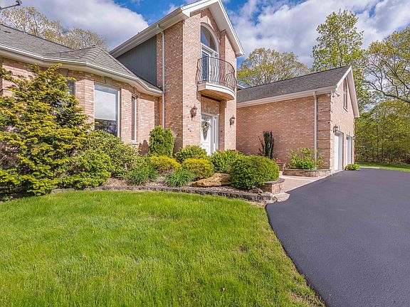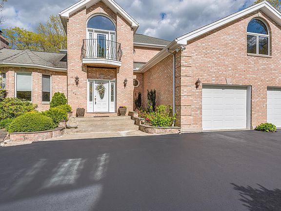 Builder's home so quality is exceptional. European Villa with brick exterior and Lyme stone accents. Modern eat-in kitchen with granite, center island, ss appliances and granite floor. Hardwood in living room, family room, hallways and 3 bedrooms. Dual staircase with cast rod acrylic rail system and 8 foot drop chandelier Marrano crystal rods hanging from two-story ceiling. Formal dining room with built-in credenza with marble top and matching dining room table. Master bedroom has full bath with double sinks, whirlpool tub and master bedroom has it's own private balcony overlooking private backyard. Partially finished lower level with walk-out and second laundry facility. Partially finished walk out basement perfect for exercise room or game room. Open floor plan that invites family and friends for all occasions.