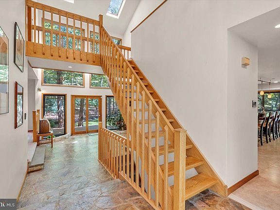Not so often, a custom contemporary home with a West Coast flare comes to the market on over 2 acres of privacy on a quiet street with no through traffic! This modern home is impeccable with its grand foyer entry of Tennessee fieldstone with an extended foyer, a new gourmet kitchen with a large granite island, five-burner Thermador cooktop, double ovens, wine cooler, pot filler, an additional side-by-side full refrigerator and full freezer, and a separate butler pantry with a full sink.  There is a cozy kitchen nook with a gas stone fireplace and sliding door to the side awning-covered deck. The 20-ft dining room is fantastic for special events, plus the oversized family room with motorized skylights and gas fireplace is also a wonderful space with lots of windows and light! With an oversized sliding door from the family room, you will love the exceptional rare cedar deck with covered custom shades, skylights, a fan, and a wood-burning stone fireplace to relax overlooking the private acreage with a cool, wooded feel of the Poconos! The additional front-facing separate living room or private study is great for those who work from home. Upstairs you will find four spacious bedrooms and an extended closet from bedroom number four, which continues into a walk-in storage room! The luxury primary suite has a new bath with heated floors, including the shower floor, a heated towel rack, a Moen shower system with multiple heads, a glass shower with a sliding glass door, a Jacuzzi tub, and double vanities. The lower level daylight basement is under the entire home and features a finished space with walk-out stairs to the rear yard. You will also enjoy the oversized two-car garage, three-zone hot-water forced-air heating system, gas heat, new 35-year architectural shingle roof with gutter guards installed in 2010, updated AC units in 2018, circular driveway, all Andersen doors and windows, and the third detached garage. If you love privacy but are still close to everything this may be it! *3D tour available to view