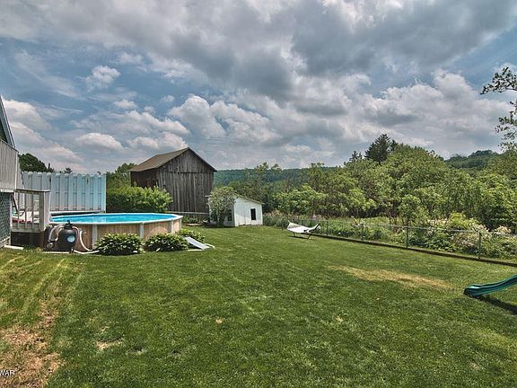 Nicely landscaped 4 bedroom home tucked away on a quiet side road just minutes from town & sc hools! Features generous living space w/ 2 bedrooms on the main level + living room & large EIK w/ laundry area. Upstairs are 2 more bedrooms including the massive master suite with its full bath, walk-in closet & bonus sitting area that could easily be your office or nursery! Plentiful storage w/ large closets, a full unfinished basement, wood-burning stove, & a 2-car detached garage as well. Enjoy time outside experiencing nature or entertaining on the sprawling back deck overlooking the level, fenced in yard & pool! Covered front porch is just waiting for your rocking chair! Distant countryside views offer a look at eagles' nests and seasonal views of the windmills & creek in the distance