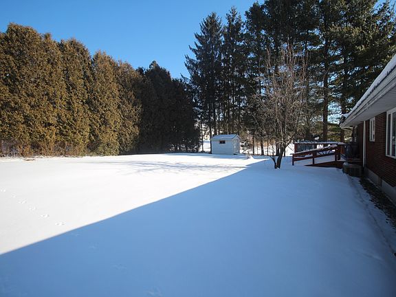 Spacious Ranch style home situated on a double lot, (200'x125' plus another 100'x125'). Entering the front door, you walk into a spacious foyer that's open to the living room with a fireplace. 2 bedrooms off to one side including the master with its own full bathroom. Another full bathroom between the bedrooms, a kitchen with appliances and separate eat in area, and family room/den or 3rd bedroom with slider out to the private back yard. Large semi-finished basement with summer kitchen area and possible 3rd bathroom. Huge yard, open front porch, and an attached 2 car garage.