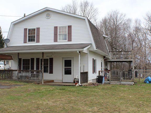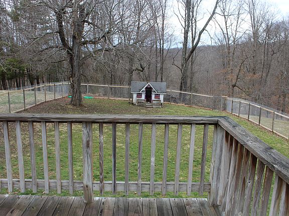 Barn style home in a countryside setting Features 3 bedrooms, 2 baths and upper and main level decking for fantastic scenic views.Newer ceramic tile and kitchen with solid surface counter Family room or play room plus big living room. Central heating and air conditioning provided by Heat Pump, Public water and public sewer. Chain link fence around huge back yard ideal for pets or small children.