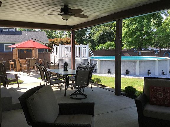 "Expanded Colonial" offering an OVERSIZED MASTER SUITE, Gourmet Kitchen, Fenced in yard with a 40 x 20 Covered Patio, Tiki Bar, POOL, Basketball court for your family picnics, and Bar-B Ques! The entry foyer offers Ceramic tile flooring, updated Powder room, and coat closet! Your formal Living, and Dining room offer Hardwood floors, updated Tilt-In windows, Crown and Chair molding. Your Gourmet kitchen offers an Island that seats 6, with a gas range top, and a double oven! The oak cabinetry offers glass enclosures, and 3 Pantries! The counters are GRANITE, w a deep sink; Ceramic Tile floor, and Back Splash! The Stainless Appliances are included! Your family room offers Hardwood flooring, and a sliding glass door leading to your 40 X 20 COVERED PATIO, Tiki Bar, POOL, and Basketball court. There is a 6 foot privacy fence, and a storage shed with electric that is included. The MASTER SUITE offers vaulted ceilings with a ceiling fan; a separate dressing area, Walk-In Closet, and an Updated Master Bathroom! There are 3 other bedrooms on the 2nd level all offer hardwood floors. The main bathroom has been updated! The garage has been converted, to make the laundry room more spacious. The LENNOX GAS FURNACE, and Central Air Conditioner are 1 year new! All the windows are newer Tilt-In for easy cleaning. All the ceiling fans, light fixtures, and window treatments are included! So many upgrades, and maintenance free exterior are reasons to put this one on your list to view!