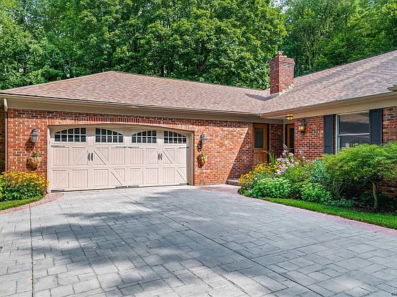 One story living nestled on a private lot.Stamped concrete driveway leads up to this spectacular home!New roof,furnace,¢ral air.The cozy family room has a wood-burning FP w/brick surround,wood mantel,&raised hearth.Pella sliding glass door leads out to the newer cedar deck.Kitchen features double-tier granite counters,SS appliances,including a built-in microwave&convection oven.Newer pendant lighting over the island w/extended round counter for casual dining.All bedrooms have new HW flooring,including the oversized master suite.Pocket door entry into the master bath w/new granite counters&walk-in shower.Bright sunroom w/transoms&a full glass door leads to the fenced-in yard.Incredible octagon-shaped gazebo w/electric&paddle fan,overlooking the inground pool!