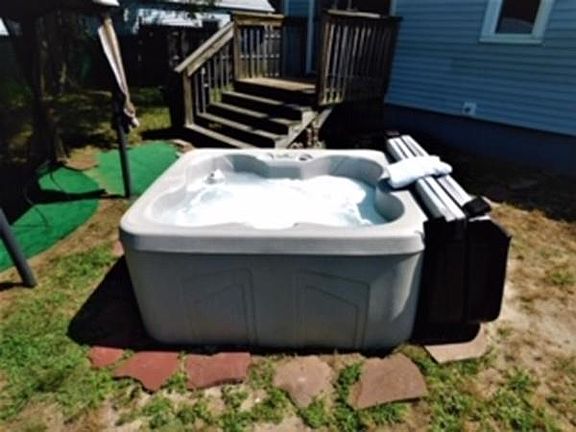 - Exterior Features: Deck, Hot Tub/Spa, Gutters, Professional Landscaping, Sprinkler System, Decorative Lighting, Fenced Yard, Satellite Dish