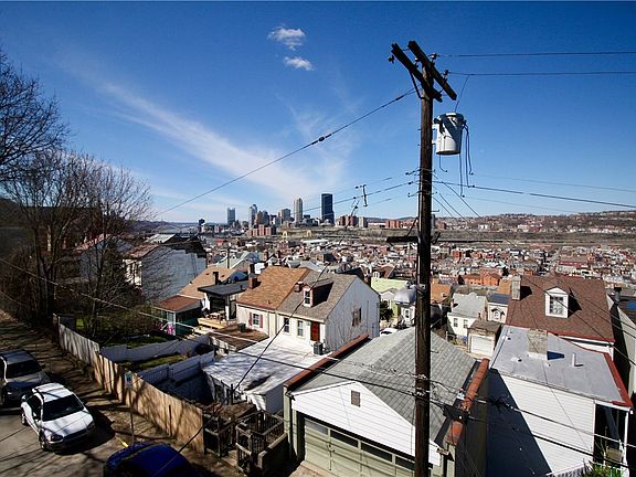 Perfect fixer-upper or rental property perched on a quiet dead end street in South Side Slopes. Tons of potential. Fantastic views of downtown Pittsburgh, the South Side, and Oakland. Four bedrooms and two full baths. Fourth bedroom on lowest floor could be used as a TV room/den/living room. Fabulous views from every floor and great natural light. Eat-in kitchen, full bath, and a large living room/dining room on the main floor. Two bedrooms and second full bath on third floor. Fourth floor has large bedroom with an unbeatable view of downtown. New water heater installed 2014. 200 amp service. Tiered back yard.