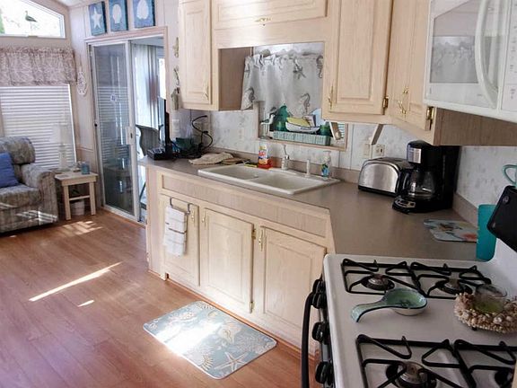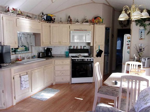 This beautiful mobile home was bought in 2000 and florida room was built in 2001. Offering one bedroom, one full bath with skylight, large eat in kitchen with dining area, living room with skylight. Florida room offers doublepane windows. Let's not forget the extra closets for storage and large deck enjoys warm summer nights. Campgound features in-ground pool, coin-op laundry facilities, security booth at entrance, and lake which enjoys kyaking, canoeing, row boat, and fishing. HOA fees approx 1800 per year and best part is you own the land. The park is open from March 1st through November 30th, during the months of December, January, and February you can stay any 14 days per month, during the three winter months. Put this on your must see list.