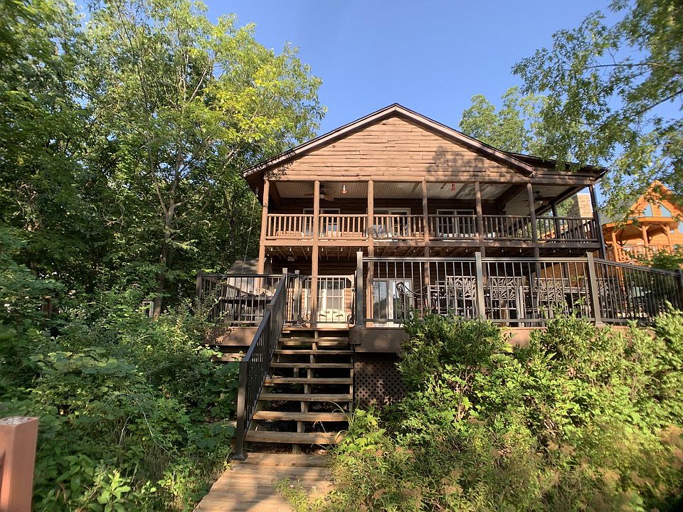 This remarkable waterfront log home was created with entertaining and outdoor fun in mind! The huge deck with delightful views will accommodate a large crowd, even for a sit down event. Imagine creating a great dining space under an umbrella as well as a cozy sitting area with a fire table - there's plenty space! Ready for a boat ride? Take the steps down to the large dock area where you can easily dock 2 boats, swim and fish, and enjoy the expansive lake views. No problem if the crowd wants to spend the weekend, as there are 5 bedrooms and 2 huge full baths. Plenty of room to seat 8 in the open kitchen, and lots of gathering space between the living room and oversized finished walkout basement family room. Additional wrap around deck on the main level is the perfect spot to perch with morning coffee while enjoying the glint of the sun off the water. Extra large garage holds all the tools and toys, and has a finished bonus room upstairs which is sure to be the kids favorite hangout. In addition, this home provides access to all the amenities Lake Thunderbird offers: private beach, swimming pool, tennis courts, Frisbee golf, miniature golf, playground, nature trails, picnic areas, and great fishing and boating! Properties like this are few and far between so don't miss out!