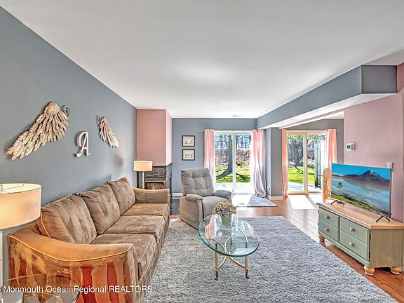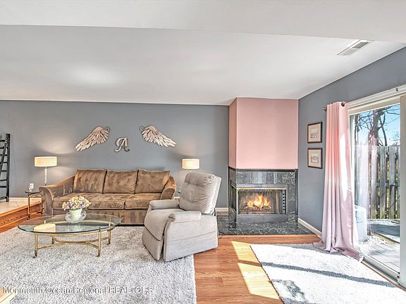 Welcome to 24 Malibu located in a quiet tucked away community of Brookwood. Home includes newer updated kitchen with white cabinets, granite counters plus stainless steel appliances. The dining area and spacious living room with a wood burning fireplace both with sliding glass doors open to a paver patio with Weber grill. The property backs up to woods for privacy. The second level has two nice size bedrooms and the primary bedroom has a private bath and walk in closet. There is a loft perfect for office, playroom or workout area. Also includes private driveway and a one car garage. Conveniently located to shopping restaurants and easy access to GSP, Rt. 18 and Rt. 35. Just a few miles to Seven President's Beach in Long Branch and Monmouth Park and Wolf Hill Recreation Area