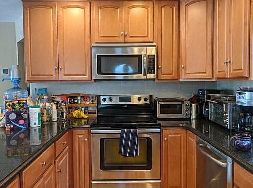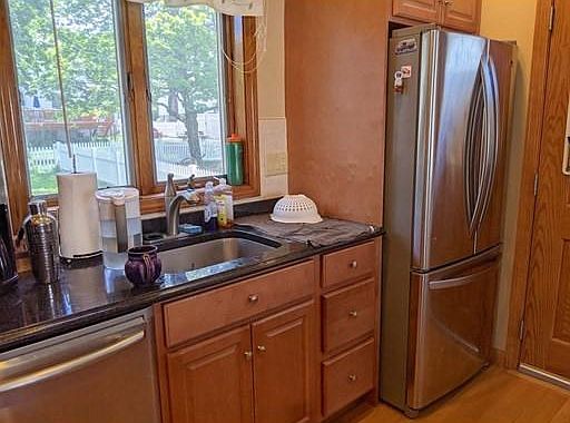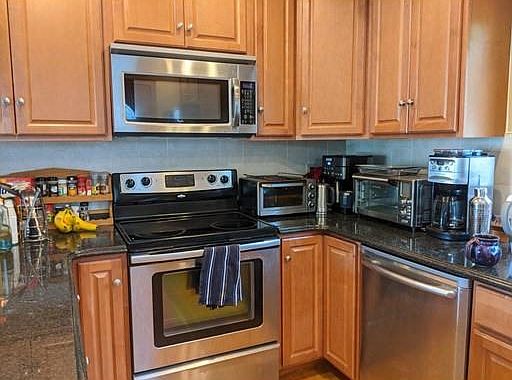 This is a 3 bedroom, 2.5 bathroom house for rent just south of the Middlesex Fells Reservation and conveniently located off the 93, north of Boston, Cambridge, and Somerville. The house was renovated recently with stainless steel appliances, central A/C, and a finished basement. Washer/dryer in the laundry room of the basement, adjacent to another room that is currently being used as an exercise room. Master bedroom has a large walk-in closet and an en-suite master bathroom with shower tub. The two other bedrooms are decent sized and have good closet space, and there is another full bathroom with tub adjacent to the two bedrooms. On the first floor is a nice open-concept kitchen equipped with a dishwasher, disposal, electric stove, full size fridge, updated cabinets, granite counter tops, and a breakfast bar. The dining room is large enough to contain a 6-person table and chairs, with plenty of extra room to move around comfortably. On the other side of the house is the living room