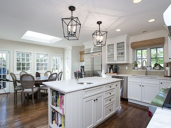 OPEN HOUSE: SUNDAY, APRIL 10TH FROM 2PM TO 4PM. This impressive Colonial makes a statement, articulated with pristine curb appeal and a sprawling interior with rich hardwood floors that anchor generous rooms and an open floor plan that is conducive to comfortable leisure living and great entertaining.The reception foyer is more than just a foyer, with wide entries on either side that introduce its formal rooms: a bright fireside living room with picture-windowed views and formal dining room with twin custom corner china cabinets.At the back of the home is the heartbeat of the home, featuring a renovated eat-in kitchen with soft white cabinetry topped with Calacatta Crema Venata marble counters and professional grade stainless steel appliances, all new in 2015, make it the perfect chef's kitchen, along with a service counter and wine fridge. A skylit breakfast area opens to both a new AZEK rear deck and large bluestone patio framed with stone knee walls that overlook the fully fenced yard and play area - all great venues for extended outdoor dining, play and relaxation. A fabulous family room with a wall of built-in library shelving is set beneath a dramatic beamed cathedral ceiling, with Atrium-topped picture windows that bring the outside in and a floor-to-ceiling focal stone fireplace that, together, artfully define comfortable living at its best. The sun-filled master bedroom suite, located on the main floor, offers the ultimate in easy living, complete with oversized windows, two custom-fitted walk-in closets and a luxurious marble-clad master bath with double custom vanity and oversized frameless shower. An additional bedroom and a home office/bedroom reside on this floor, along with an updated hall bath and tub shower that serves them. A powder room completes the picture.The second floor is host to two additional bedrooms joined by a beautifully appointed Jack and Jill full bath. A 28'x21' play room is an unexpected delight, finished with hardwood floors and custom-fitted closet - adding functional space and versatility to the home. Abundant windows add lots of natural light to this wonderful room. Walk-in attic storage off the hallway is a bonus, with potential as a master bath.There's no shortage of extra living space in the finished recreation room with a bank of recessed storage drawers, complete with a temperature-controlled 700+ bottle wine cellar for the wine aficionado. There is a large laundry room nearby and a mud room with access to the attached garage. The fortunate homebuyer will enjoy extensive enhancements that include newly refinished hardwood floors and freshly painted interior throughout the entire home, two-zone HVAC, multi-zone underground sprinkler system, professional landscaping and outdoor lighting, security system with cameras, whole house generator, and more.Well-located in a tree-lined neighborhood just blocks to Memorial Field and Brayton Elementary School, this turnkey home is a must-see!