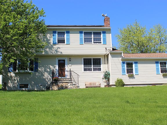 If you have an eye toward comfort and efficiency, this home is for you. Offering hardwood floors throughout most, this easy flow floor plan accommodates today's dynamic lifestyle. A light and bright open kitchen concept flows into the dining area and encompasses the gas fireplace in the family room. Step out onto the expansive composite deck from the dining area sliders for views of pretty yard. Hardwood floors and Bow window allow for traditional setting for a formal living room, but is currently used a a media room - great for entertaining and fun evenings. Generous sized master bedroom with walk-in closet and full bath. Recently updated main bath use is convenient for the three additional bedrooms. Pass through nice, catch-all mud room from 2 car attached garage. Super high efficiency Rinnai tankless hot water heater means you'll never run out of hot water; solar panels on the roof means you'll be warm and cozy all winter and have reduced electric bills ($19.25/mo aprox. 9 months, $350/mo average 3 months). Easy commute to Westchester or NYC. Buyer to assume lease of solar panels, $101/mo; 2% increase per year, 15 yrs. remaining. Easy living at it's best!
