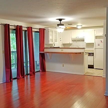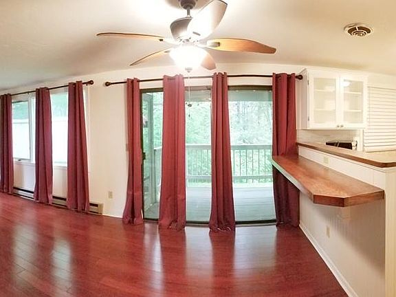 Two bedroom, 2 bath end unit condo in a quiet country setting. This unit features lovely bamboo & tile floors and a master suite with full bath. Fully applianced kitchen including: dishwasher, refrigerator, and stove and in-unit stackable washer and dryer. Eat-in Kitchen with breakfast bar, many cabinets, and a gorgeous glass backsplash. The living room has a slider to a large deck and a treed back yard. 2 parking spaces. There is tons of storage in the unit and there's an exterior shed for additional storage. No pets allowed, no smoking. Good credit required.