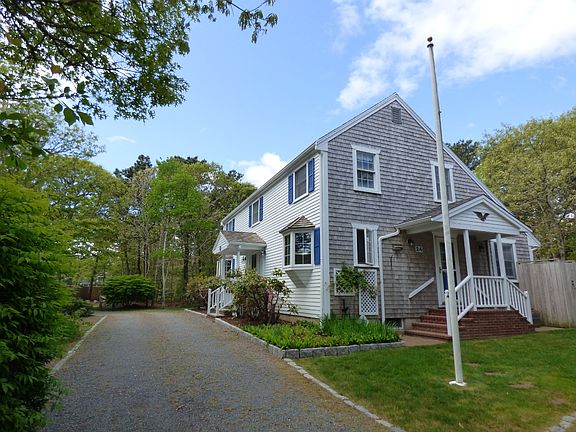 Ideal Edgartown location - quiet neighborhood close to the bike path to downtown and to the State Beach. Tucked in the woods near the Triangle, this center-chimney Colonial has been meticulously maintained by the original owner. Tastefully landscaped yard with mature plantings, flower gardens and lawn. An exceptional property! The house is in move-in condition. Many upgrades to the interior and to the landscaping were completed in 2016 and 2017 . 4 bedrooms (one on the first floor), 2 baths. FIRST FLOOR: Large country kitchen, dining area, living room with wood-burning fireplace, cathedral ceiling, French doors to 12' x 28' rear deck overlooking beautifully landscaped grounds, hall shower bath with bench, spacious master bedroom with bay window. SECOND FLOOR: Loft with skylight leads to 3 bedrooms and hall bath with tub/shower. Since 2016, improvements include new heating system, renovated first floor bath, irrigation system, bluestone driveway, cobblestone retaining wall surrounding the sides and rear of the property and cobblestone edging around gardens and driveway. A flagstone path leads to the detached two-car garage with loft. TITLE V passed for 4 bedrooms.... SELLER is in the process of bringing sewer line just to the property along Mariners Way... allowing for 7 bedrooms. BUYER is responsible for tie in from property line to the house and for the grinder pump if buyer chooses to connect in the future.