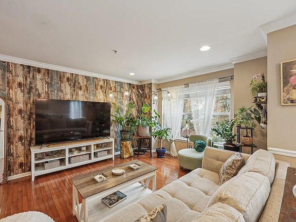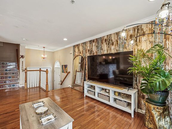 Inside, you'll find warm tones and contemporary finishes throughout. The living and dining area feature gleaming hardwood floors and elegant crown molding, while the newly renovated gourmet kitchen boasts stainless steel appliances and ample cabinet space for culinary enthusiasts.