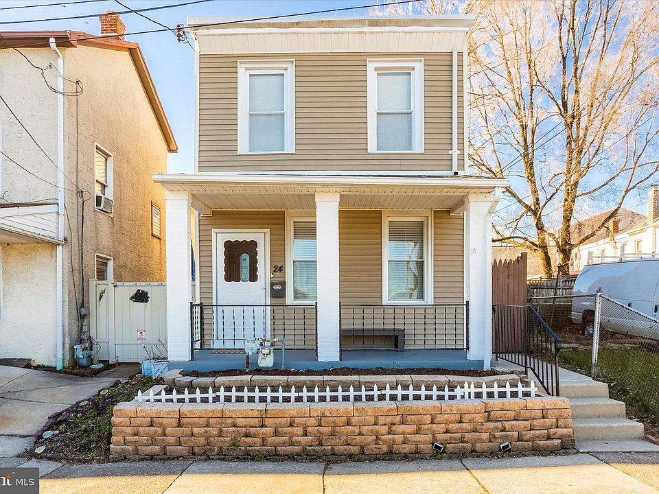 Welcome to this well-maintained 3 bedroom 2 bath single colonial with a straight-through open floor plan. Enjoy an open front porch leading into a comfortable living room with three large windows, a dining room that can accommodate a large dining table, and a well-appointed kitchen to make any chef especially happy with double wall ovens. Laundry and full bath behind the kitchen. The kitchen and laundry area has porcelain tile with a wood-like finish. Carpeted stairs to the second floor with three nice sized bedrooms and full bath. Enjoy a spacious private fenced-in yard with a wood deck, enclosed area for grilling year round and artificial grass for easy maintenance. Conveniently located near transportation, dog park, walking trails, restaurants, grocery stores, gyms and shopping centers.