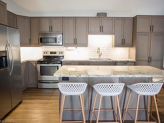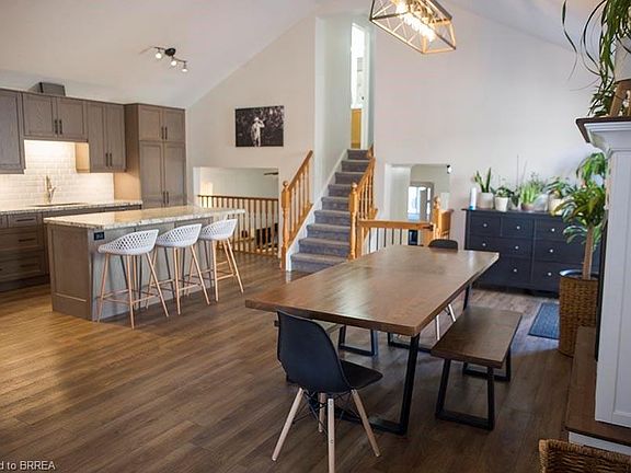 Welcome to the charming Hespeler community where this multi-level backsplit LINK home is located on a quiet street close to schools, parks, amenities, & hwy access! Only attached to the neighbours via shared garage wall & offers 3 + 1 beds, 2 full baths, a 1.5 car garage & loads of updates! The cozy front porch is perfect for enjoying your morning coffee. Welcome guests into your bright entryway w/convenient coat closet and into a large open concept space boasting vaulted ceilings & new flooring throughout. Placed at the front of the home is a formal dining area large enough for hosting family gatherings. Steps away is the newly renovated Gemstone kitchen feat. granite counters, subway tile backsplash, SS appliances, & under cabinet lighting. A pantry & large island w/ built-in wine fridge add additional counter & cupboard space. Gas hookup available for the stove. Sliding patio doors lead you into your fully fenced backyard. Large concrete patio w/hookups available for gas BBQ & hot tub make this the ideal place for spending time. A fun kids playhouse & storage shed provide outdoor storage options.Make your way back inside & up to the bedroom level where you'll find a master bed w/walk-through closet & ensuite privilege. 2 additional good sized beds & a full 4pc bath complete this floor. The LL offers a family room/home office space & new laminate flooring. Double doors lead you into your 2nd spacious master bed which features built-in storage & large windows which allow for natural light. A pocket door leads you into your ensuite privilege w/double sinks, & frameless glass shower. Head down another level to find a fully finished rec room with pot lighting & updated flooring. This is the perfect space for family movie night! In-suite laundry, cold storage, and utility room complete this level. Updates include kitchen, lower level bath, rec room, furnace with humidifier (2020), lower level master & family room flooring (2021). You won't want to miss out on this one!