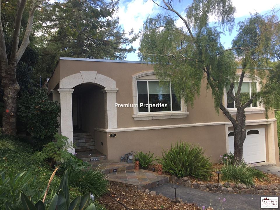 Gorgeous 3 Bedroom PLUS Office with Amazing Views is available furnished or unfurnished! Hardwood flooring throughout home. Mediterranean styling with slate outside entry. Upon entering the home there is a spacious living room. Living room features beautiful gas fireplace, Venetian plaster walls with designer paint colors and recessed lighting. There is a laundry closet with washer and dryer. The kitchen/dining area is stunning with beautiful views. Kitchen features custom paint, 4-burner Thermador Professional stove/oven, granite counters, built-in desk area, island with additional storage, stainless appliances including Bosch dishwasher. Adjoining dining area features recessed lighting and large picture window with amazing view. There is a door in the kitchen leading to large deck. The master bedroom features two closets with built-ins. The master bathroom has Travertine flooring, double sink vanity, bench seat with skylight and gorgeous shower. Bedroom 2 has a great view. Bedroom 3 has a great view and a slider leading out to the backyard. The backyard is gorgeous. It features spectacular views, multiple sitting areas, large deck, and is a private setting surrounded by the hillside and redwood trees. The attached garage is finished and would make a great gym, play area, or single-car garage. There is a separate office located off of the garage. It has its own entrance separate from the house. Home has a tremendous amount of storage! Forced Heat and A/C with radiant heat for low energy. This home is a natural retreat with a great location close to freeway access, BART, and very close to Wagner Ranch and highly rated schools! Gardener included. Pets negotiable with owner approval and additional deposit. No Smoking. Please call Darcy with Premium Properties at 925-286-4891.