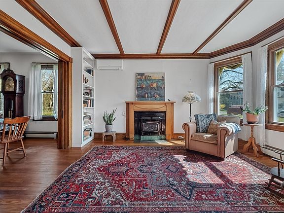 An ideal location! Victorian charm. 2 car attached garage with EV charger. Large lot. Upgraded systems. High ceilings. Original details. This spacious and gracious 5bdrm/3ba home was expanded in 1990 to include a family room, 1st flr bath/laundry, and garage with convenient "pull thru" to rear. In 2004, the walk-up attic was converted into the 5th bedroom with bath. Energy efficiency updates include: 27 replacement windows, retractable awnings, 7 mini-split heat pumps for cooling & heating, and a high efficiency hot water system. Electrical system was fully updated. Open kitchen with original pantry has cherry cabinets, induction range and dining area leading to a deck with pergola overhead. Garden shed and chicken coop out back. Come with your ideas and make this special house your dream home. Smith College, Northampton HS, the Y and Childs Park close by. Don't miss this opportunity to live on one of Northampton's most desirable streets! OFFER DEADLINE Tues 4/30 at noon.